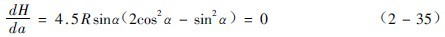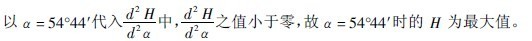 在拋落式工作的磨機中,磨礦作用主要來自鋼球落下時的動能。此動能的大小,與鋼球的落下高度(H)有關(guān),而鋼球的落下高度又決定于磨機的轉(zhuǎn)速。根據(jù)前面的論述,必然可從鋼球更大落下高度來決定磨機的合適轉(zhuǎn)速。照此理,將公式(2-29)取導(dǎo)數(shù),并令它等于零,就可以求出使鋼球有拋物落下高度時的脫離角,再從它找到相應(yīng)的轉(zhuǎn)速。