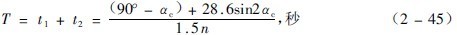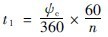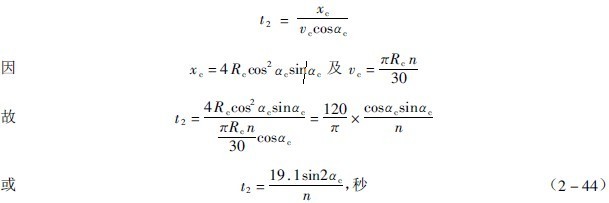 磨機(jī)一直是作圓運(yùn)動(dòng)的,但其中的鋼球的運(yùn)動(dòng)軌跡,一部分是圓曲線,另一部分是拋物線。因此,磨機(jī)轉(zhuǎn)一轉(zhuǎn),鋼球的運(yùn)動(dòng)未必也就是一個(gè)循環(huán)。從圖3-2-10可以看出,鋼球從脫離點(diǎn)A真拋到落回點(diǎn)B,比圓運(yùn)動(dòng)快,因而鋼球總是超前的,換句話說,磨機(jī)轉(zhuǎn)一轉(zhuǎn)時(shí),鋼球不只循環(huán)運(yùn)動(dòng)一次。設(shè)%"是鋼球作圓運(yùn)動(dòng)的時(shí)間,當(dāng)磨機(jī)轉(zhuǎn)一轉(zhuǎn)時(shí),用同樣速度作圓運(yùn)動(dòng)的鋼球轉(zhuǎn)過的圓心角為