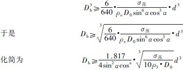 公式(5-27)是粒度為d的礦塊抵抗破壞的能量,公式(5-34)則是直徑為Db的鋼球打擊礦塊時(shí)所具有的動(dòng)能。從巖礦的破碎原理分析,當(dāng)球的打擊能量大于礦塊抵抗破壞的能量時(shí),即En≥E抗時(shí),礦塊發(fā)生破碎,也即是: