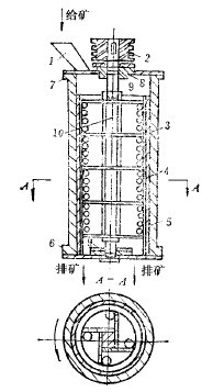 圖1示出了立式多室離心磨機(jī)的結(jié)構(gòu)及工作原理。該機(jī)的筒體豎直安裝。