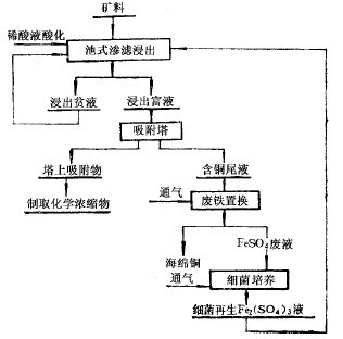 幾年來的生產(chǎn)實(shí)踐證明,硫酸-細(xì)菌浸出貧礦石的工藝,可以綜合浸出礦石中的銅和稀有金屬,回收率較高、操作簡(jiǎn)便、設(shè)備少、成本低,是一個(gè)變廢為寶、化害為利、綜合利用礦產(chǎn)資源的有效途徑。